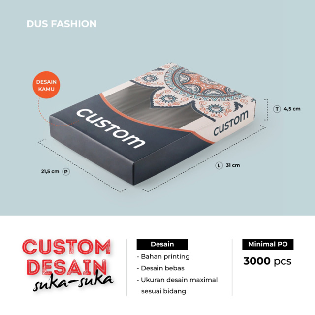 Custom Product menghadirkan produk kemasan dus kemasan berbagai ukuran yang bisa dicustom dengan logo / brand anda.